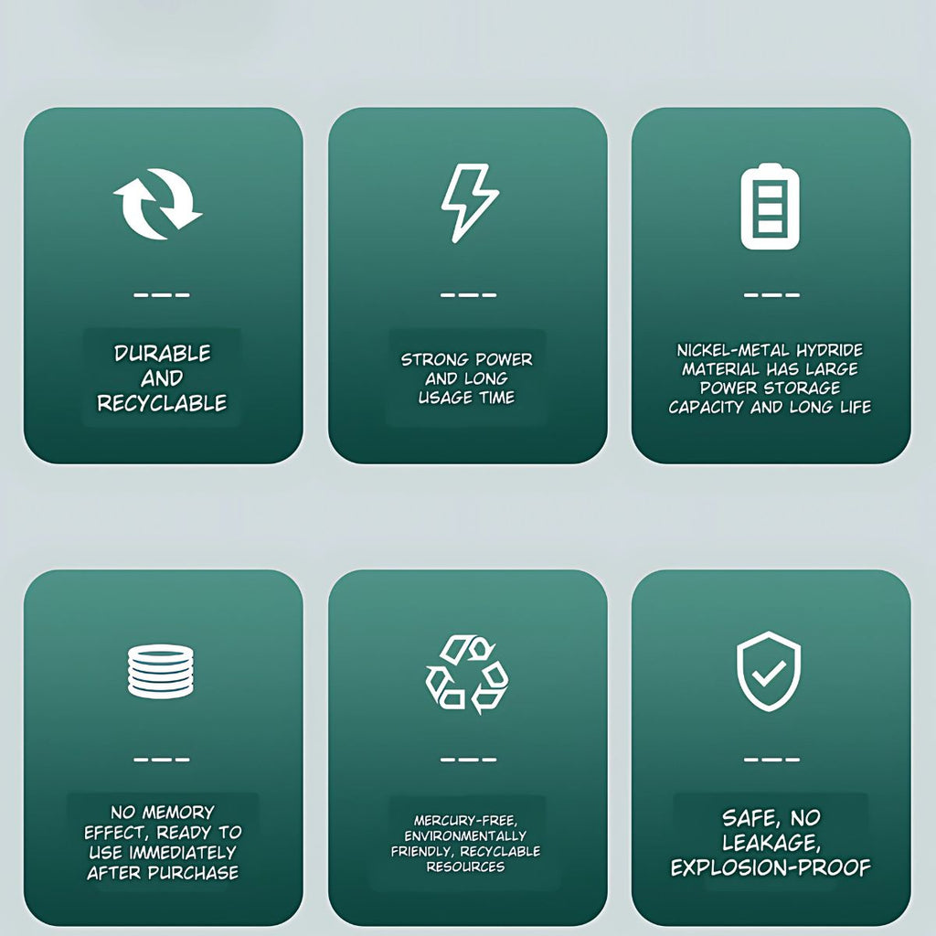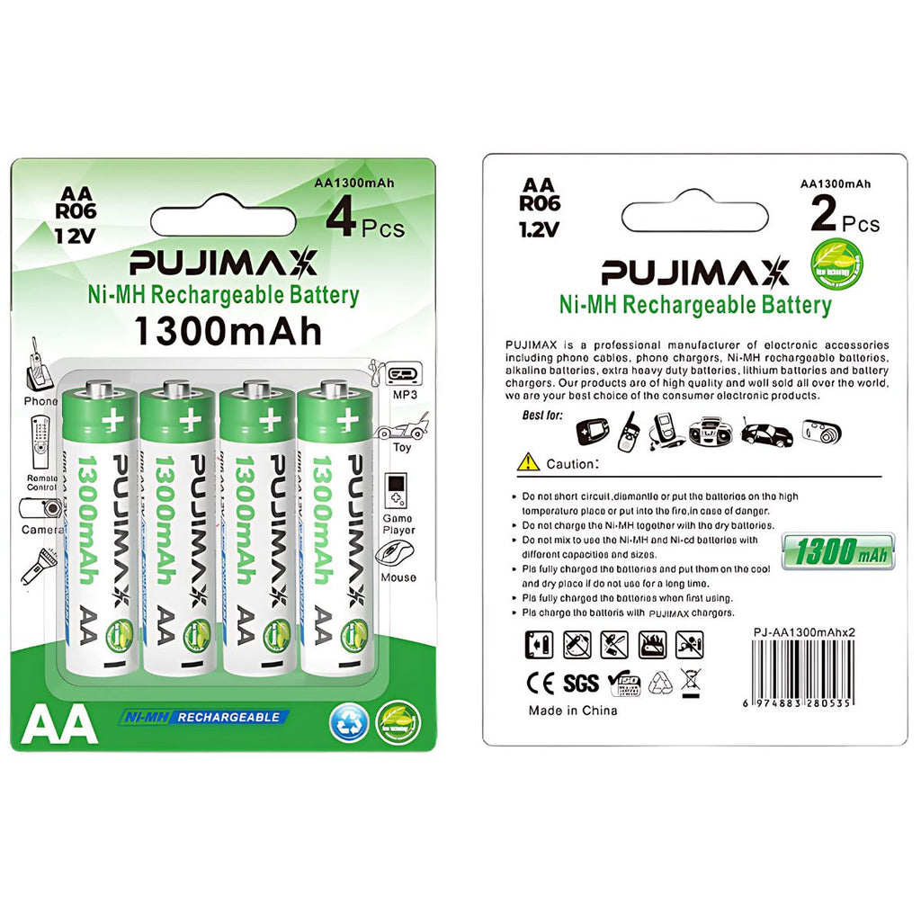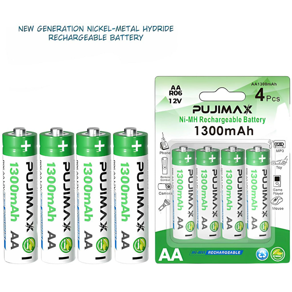 - Baterías recargables AA (tamaño 5) con capacidad de 1300mAh.