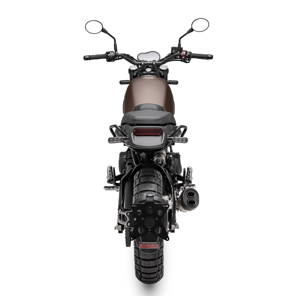 •Suspensión Trasera Single Shock: Swingarm con mono amortiguador lateral ajustable en precarga de muelle y freno de extensión.