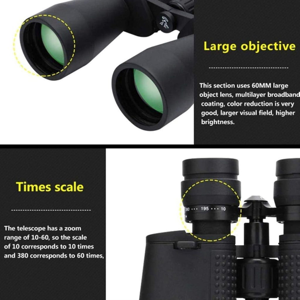 -Lente Objetivo de 60mm, mayor apertura, visión más cómoda, mayor transmisión de luz e imágenes más claras y nítidas y detalladas a larga distancia