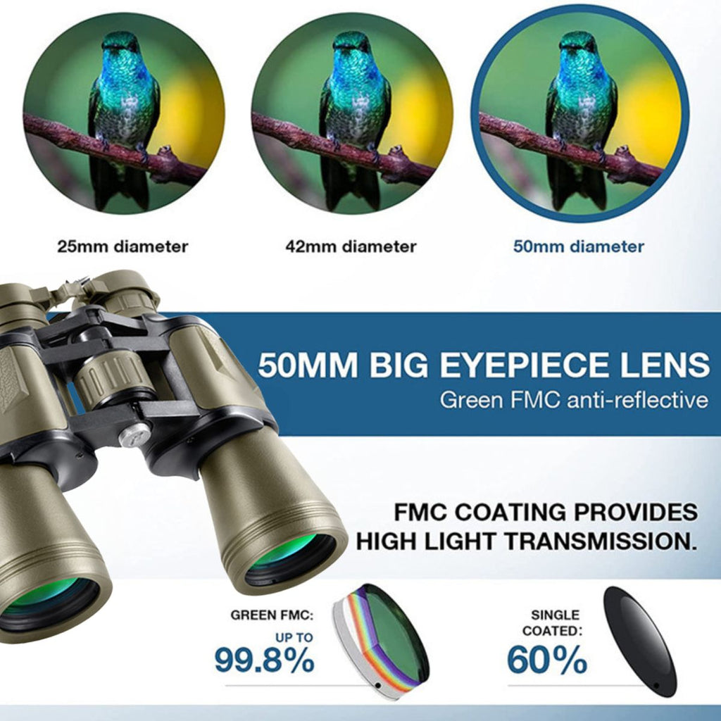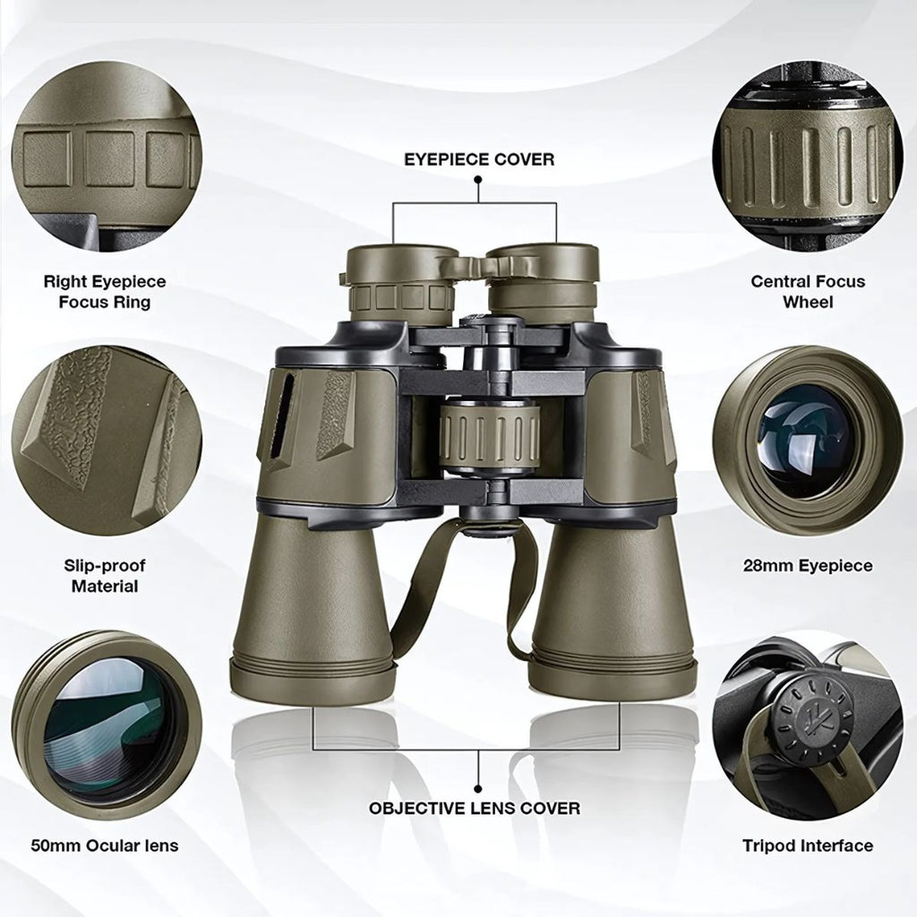 Binoculares de Largo Alcance 20 X 50. Prismáticos Compactos Impermeables para Caza, Observación de Aves y Estrellas.