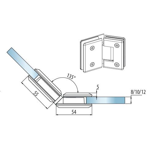 Bisagra de ducha 135 grados Aleacion ZAMAC. Economica Acabado Satinado. Vida util 2-3 años