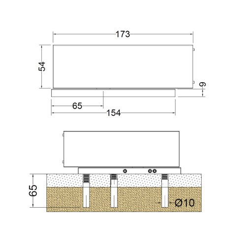 | Perforación | Ø10 mm / 65 mm de profundidad |