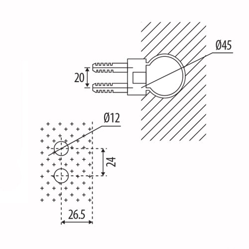 Bisagra para vidrio de 6 a 12 mm . Tipo vidrio-Muro.(slim Anchorage) Acabado Brillante