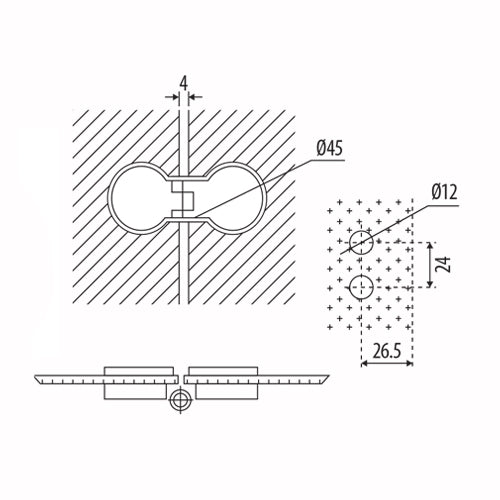 Bisagra para vidrio de 6 a 12 mm . Tipo vidrio-vidrio 180 grados. Acabado Brillante