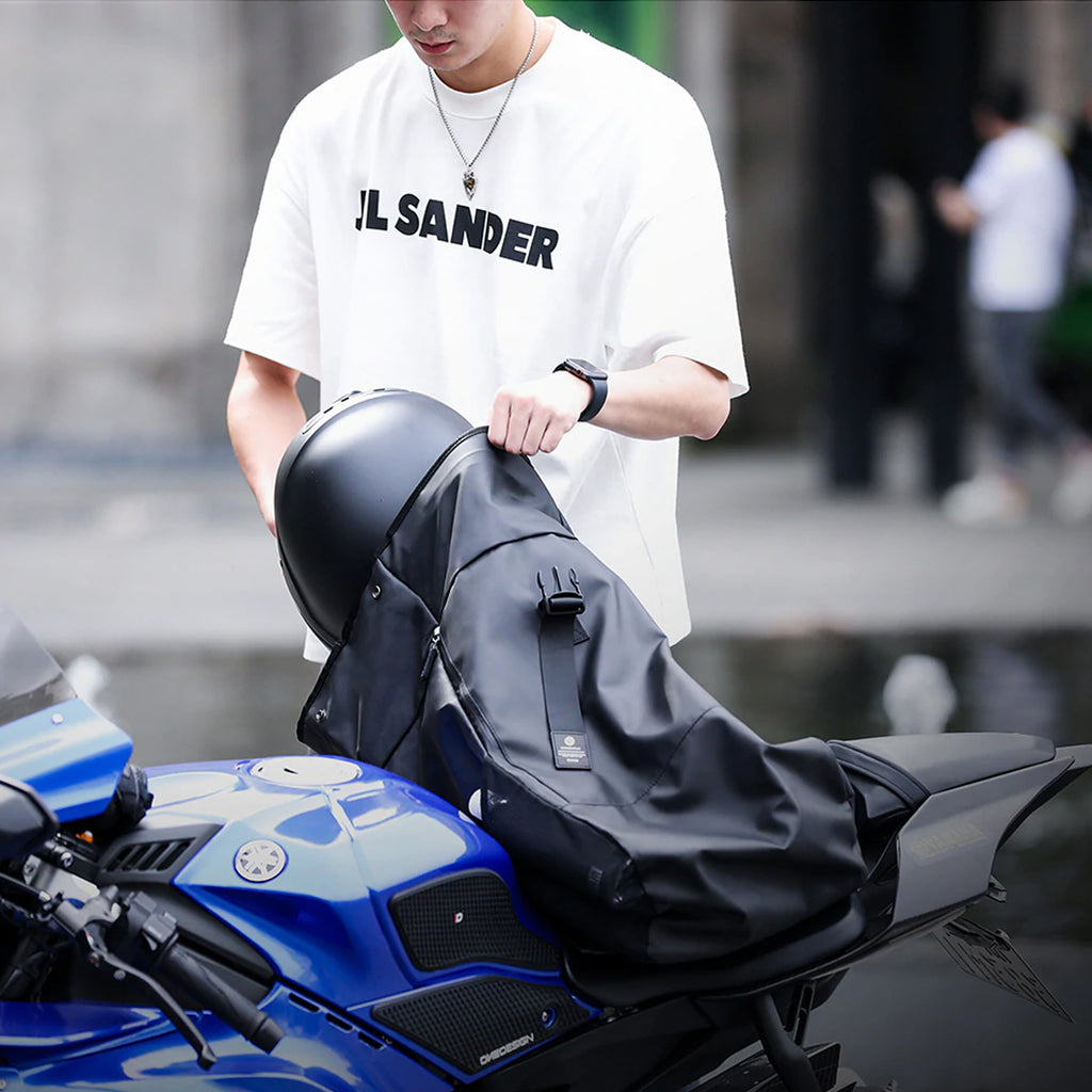 -Logotipo reflectante de la marca: El logotipo de la marca en la mochila de la motocicleta es visible en el área oscura, lo que no solo mejora la seguridad cuando se conduce con la mochila por la noche, sino que también es fácil de encontrar cuando es necesario preparar la mochila del casco.