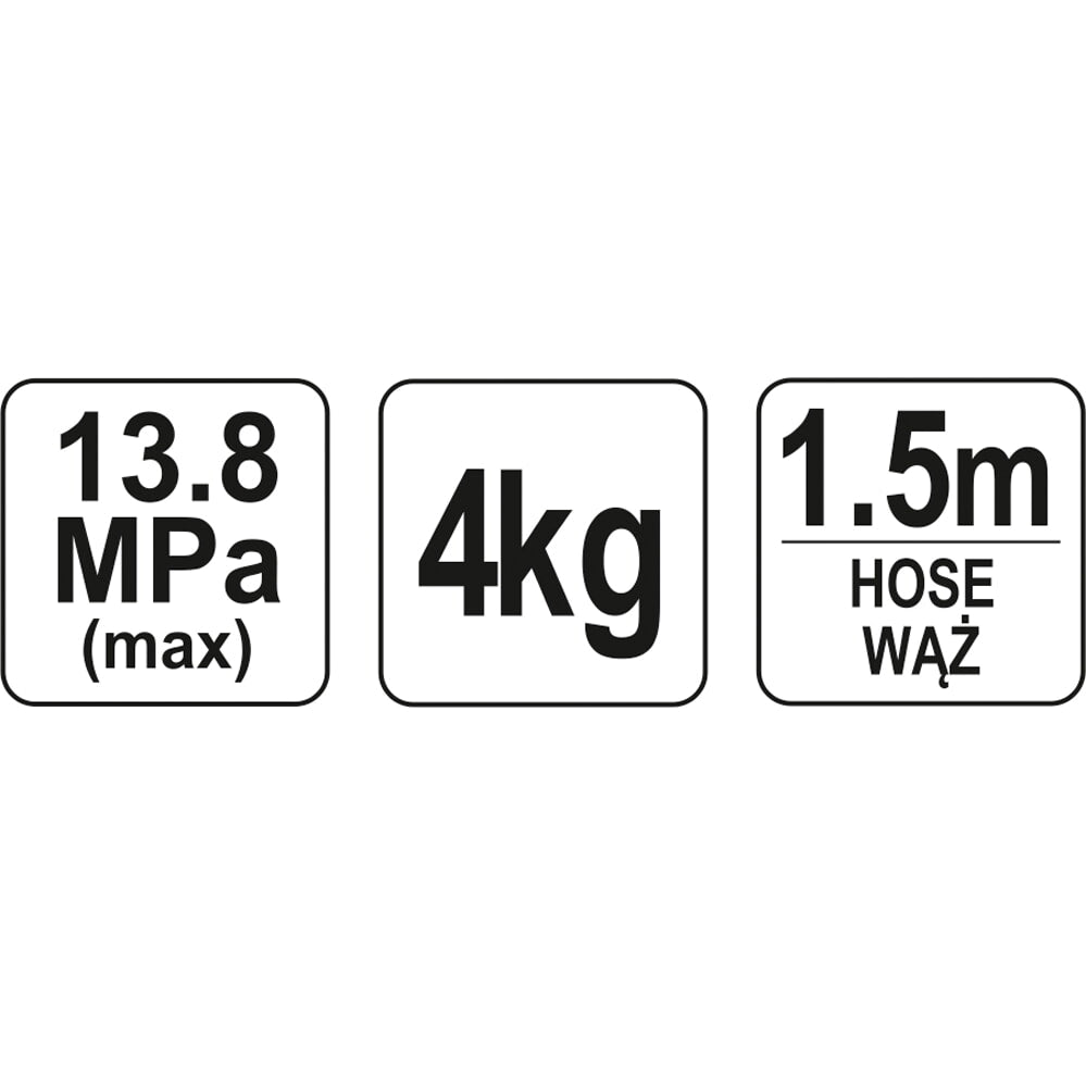 CAPACIDAD: 4KG; LONGITUD DE LA MANGUERA: 1500 MM; PRESIÓN: 3000PSI