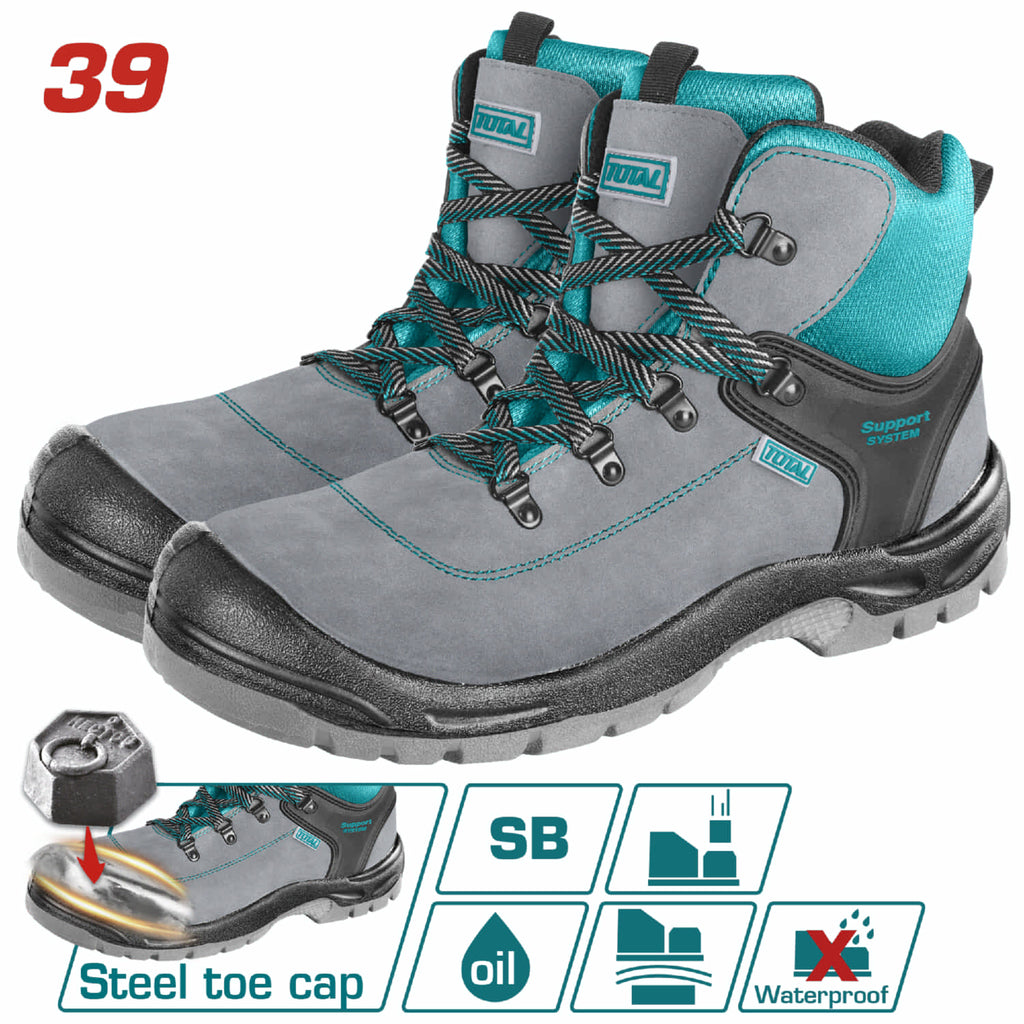 Botas de seguridad de cuero con soporte de talón/tobillo, Punta de acero 39. Suela de poliuretano de doble densidad.
