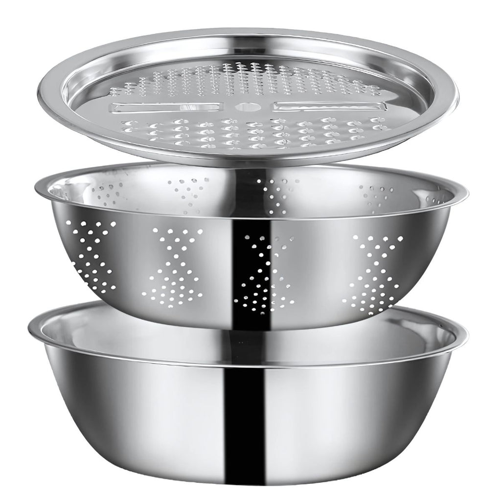 Bowl Colador Rallador de Acero Inoxidable 28cm. Kit Set de 3 Piezas.