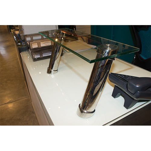 Soporte de vidrio sobre mesa recepcion 200mm Ø 50mm bronce nickelado a 45 grados