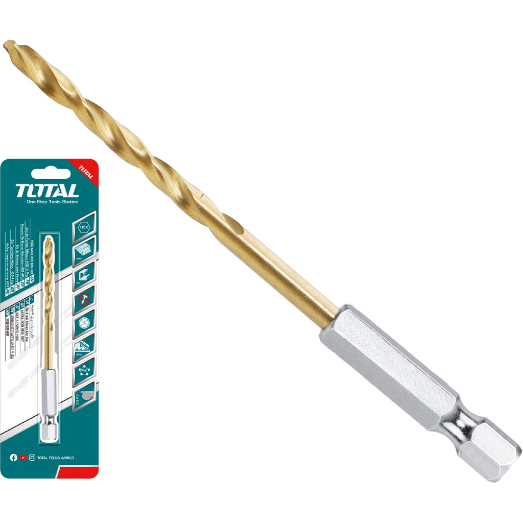 | *Nombre | Brocas Helicoidales HSS para Metal. Vástago Hexagonal 1/4" Acabado de Titanio. |