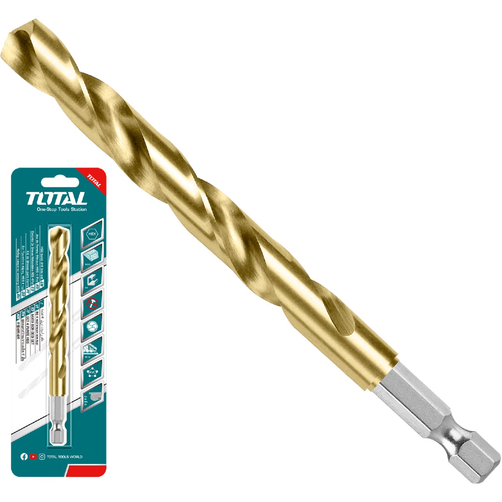 Brocas Helicoidales HSS para Metal. Vástago Hexagonal 1/4'' Acabado de Titanio.