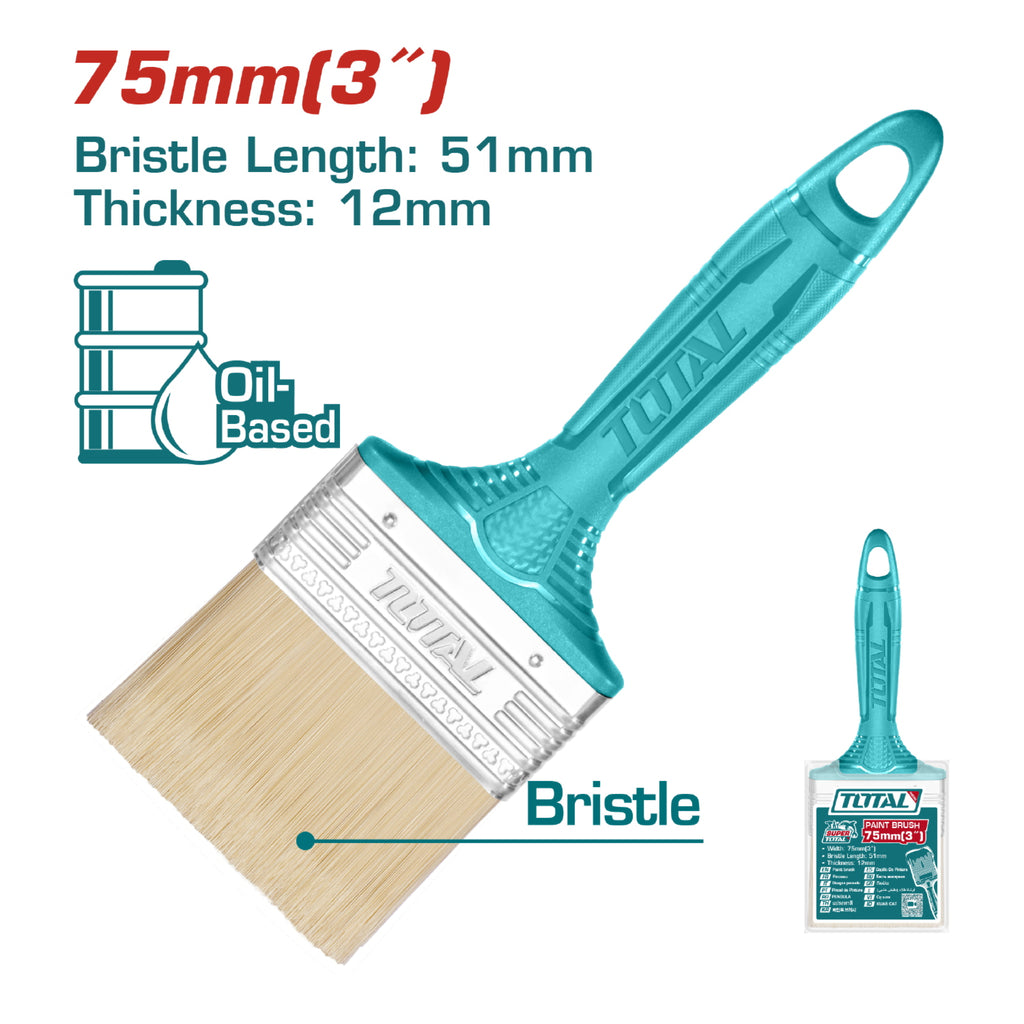 Brocha de 3'''' (75mm). Largo 51mm grueso del pelo 12mm. Mango de plástico. Para usar con pinturas con aceite. Presentación bolsa de plástico.