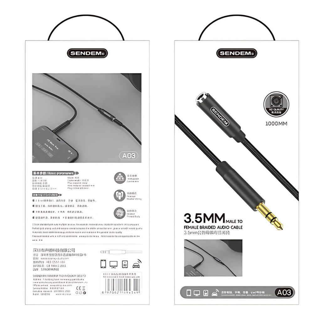 - Cable de extensión de audio con conectores 3.5mm (macho a hembra), ideal para ampliar el alcance de audífonos y otros dispositivos.