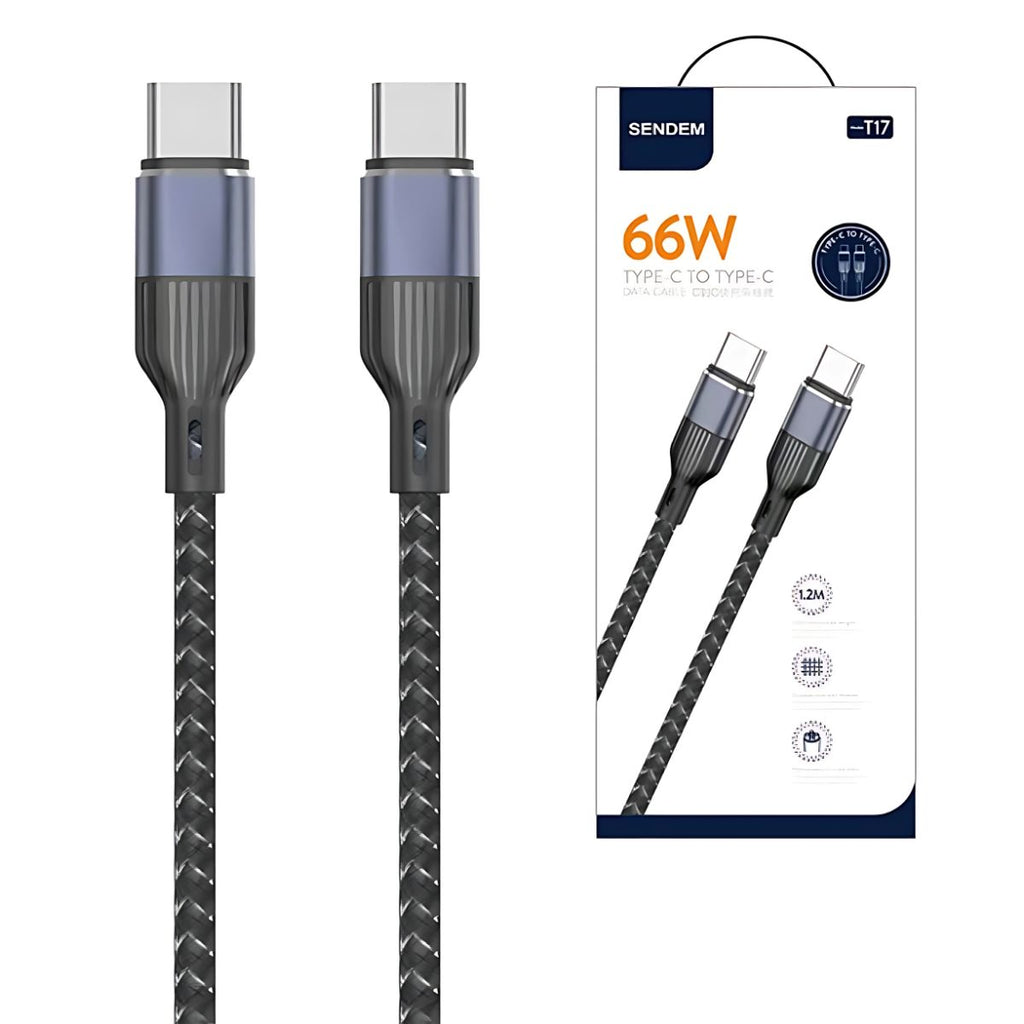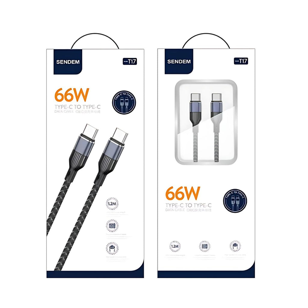Cable Tipo-C a Tipo-C de Carga Rápida 66W y Transferencia de Datos. Longitud de 1.2 Metros.
