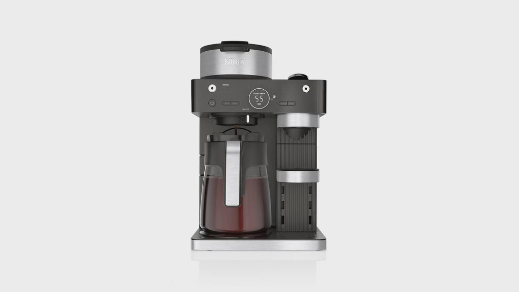 Cafetera Ninja Espresso & Coffee Barista System. Máquina de café de capacidad hasta 12 Tazas, función para cápsulas de Nespresso, Espumador Plegable CFN601.
