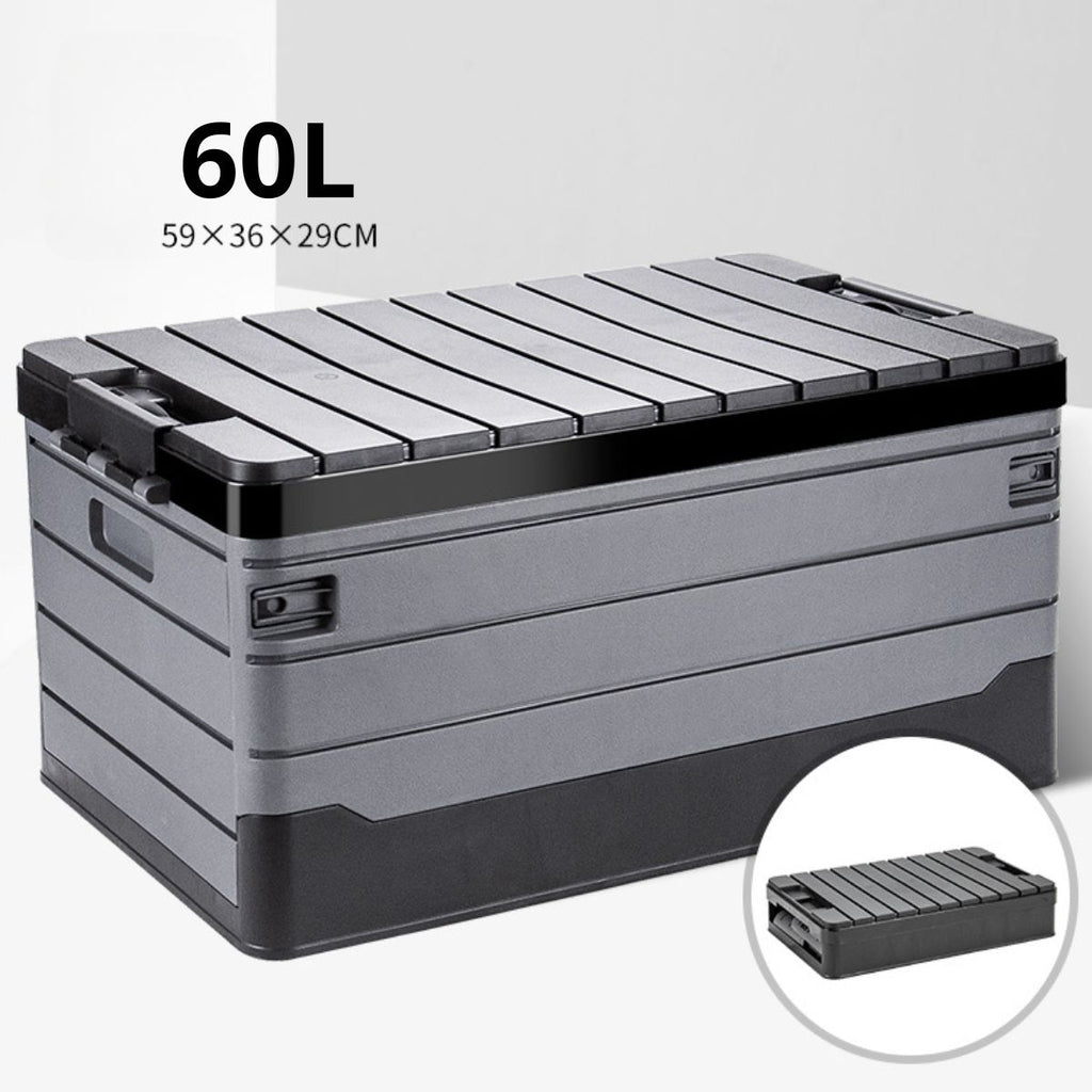 Caja de Almacenamiento Plegable 60L con Tapa Plana. 59x36x29 cm. Contenedor organizador. Caja plástica multiusos.