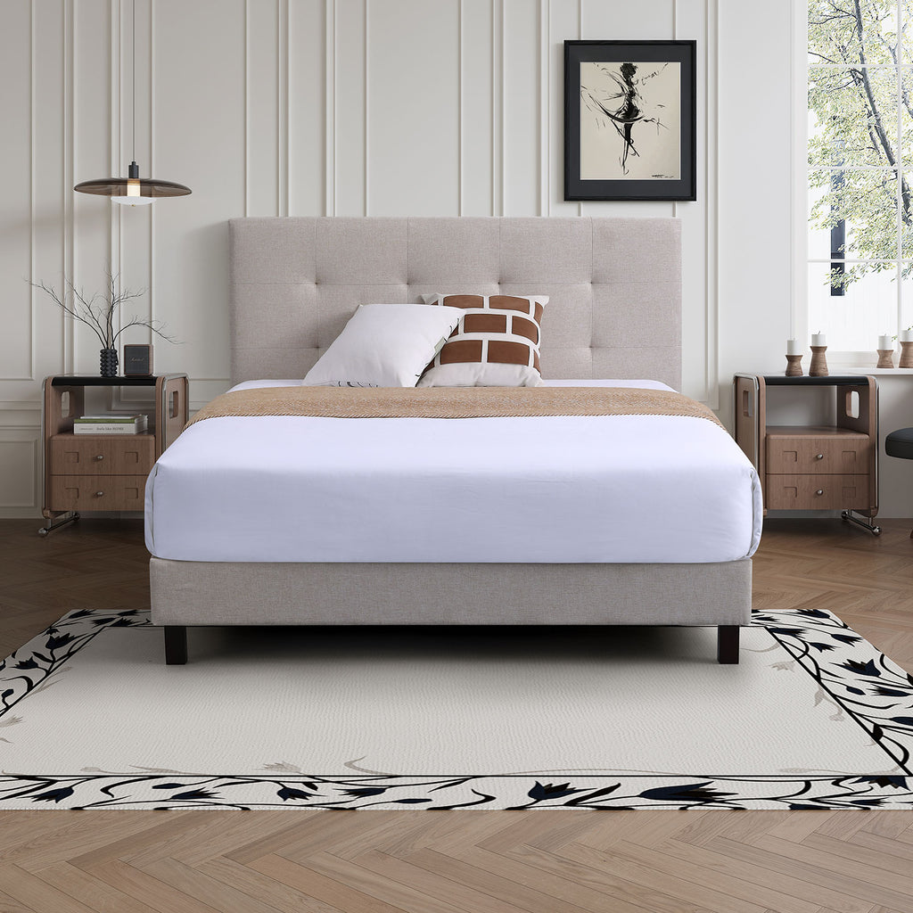 Camas fáciles de armar color Beige respaldar cabecera acolchado alto