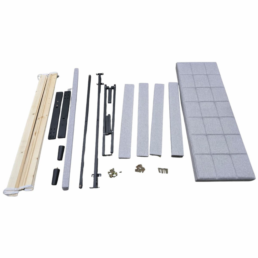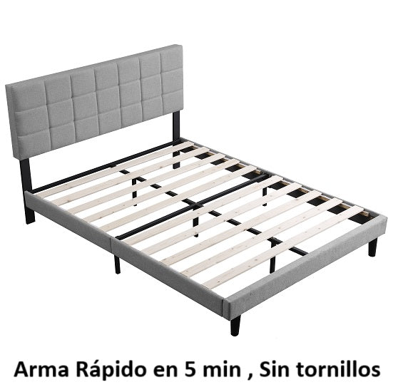 Camas fáciles de armar color gris con respaldar cabecera acolchado