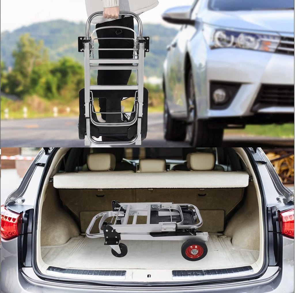 Carrito de mano multifuncional 2 en 1: obtendrás un camión de mano de dos ruedas resistente y un carrito de empuje de plataforma de cuatro ruedas, todo en uno. Capacidad de carga de 150kg se puede utilizar como una plataforma rodante regular o como escaladora.