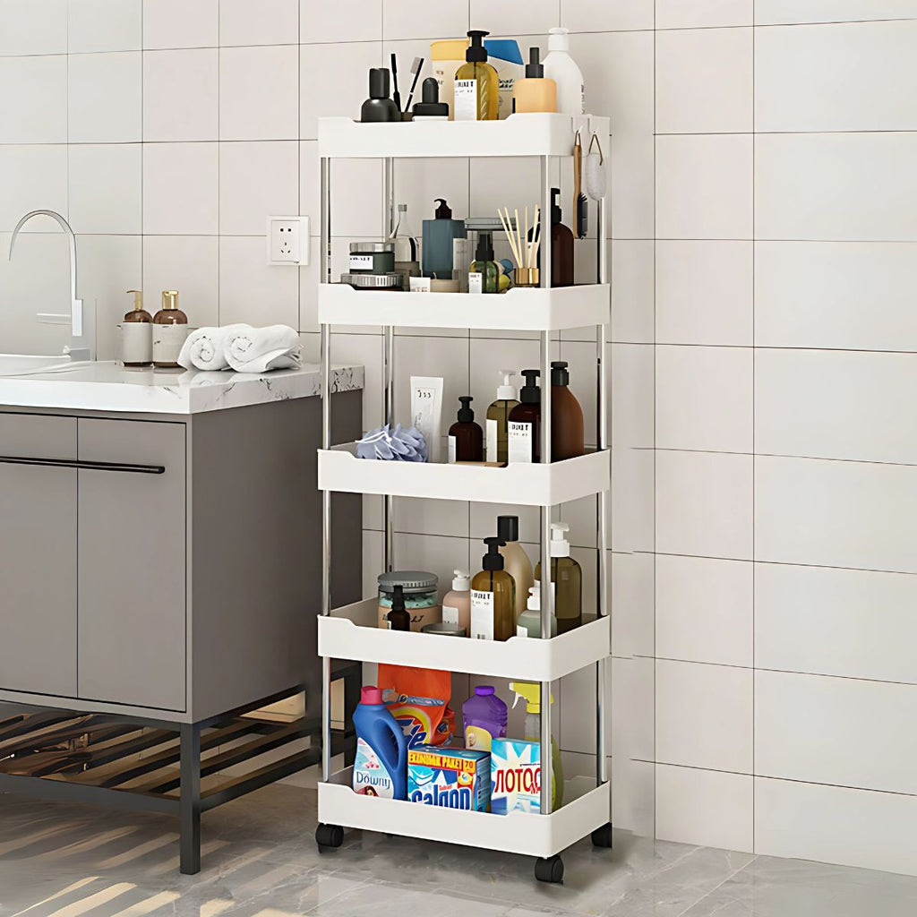 Carrito organizador de 5 niveles. Color blanco 40x22x113cm. Anaquel multiusos de almacenaje con ruedas.
