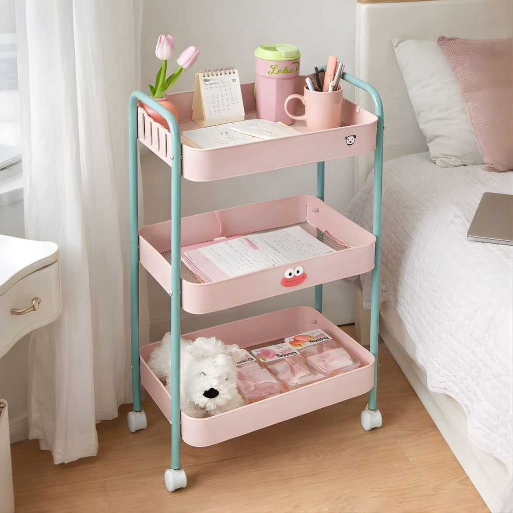 Carrito Organizador Metálico De 3 Niveles 17x12x 28” (43x30x73Cm) Carrito Auxiliar Multifuncional Para Hogar, Oficina, Cocina Y Baño. Color Rosa Y Celeste