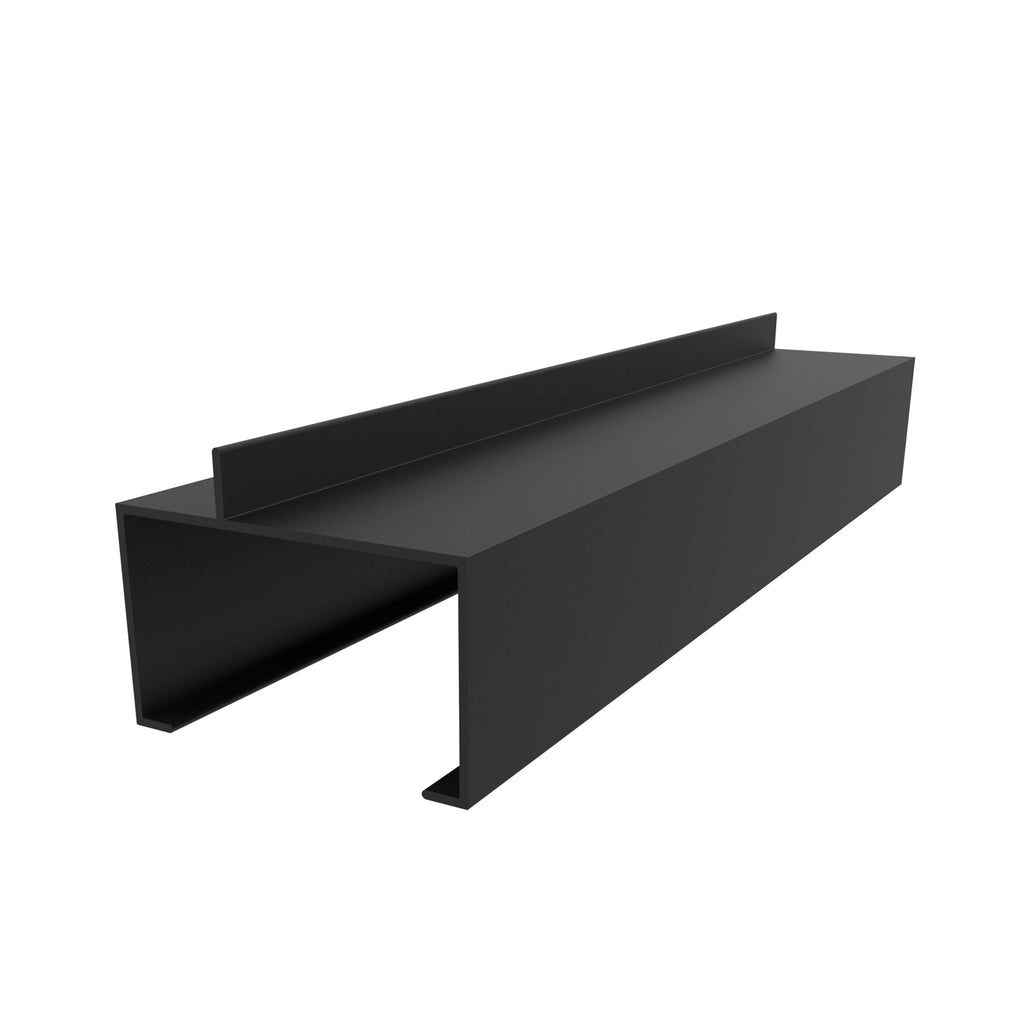 CE-30 Perfil Marco Fijo 3'' x 1 3/4'' Abierto con Aleta Descentrada. Espesor 1.8 mm. Largo 5.85 mts. Acabado Anodizado Negro 15 Micron.
