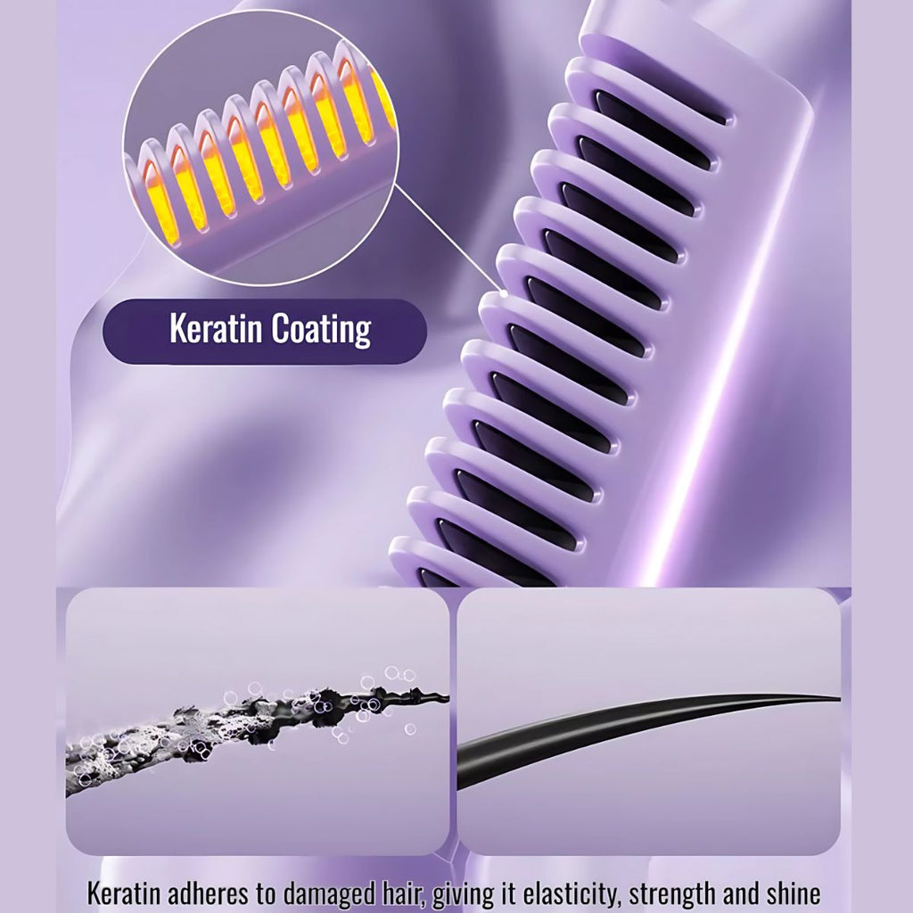 Cepillo Alisador de Cabello Inalámbrico. Peine portátil para alisar pelo. 3 temperaturas.