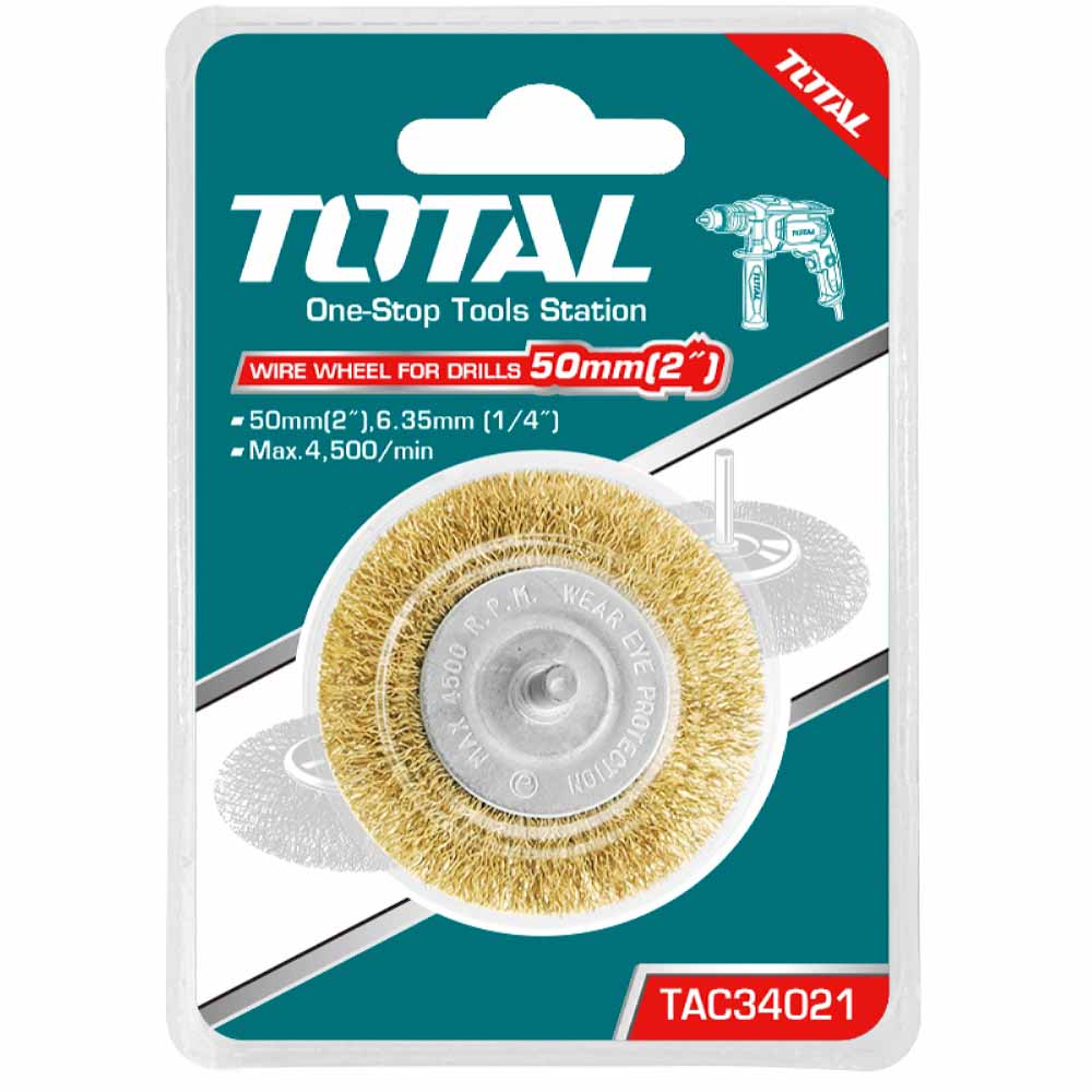 Cepillo de Alambre Circular de 50mm. Para taladro. Diametro del alambre 0.35mm. Diametro del vastago 6.35 mm. (1/4'')