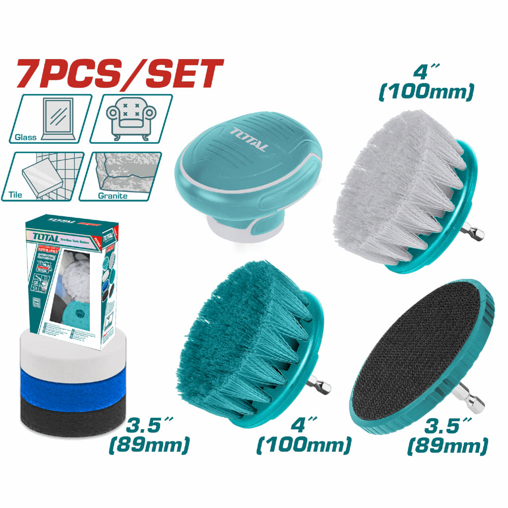 | Características | limpieza con accesorios. Incluye: Cepillos, almohadillas y soporte. Set de 7 piezas. |