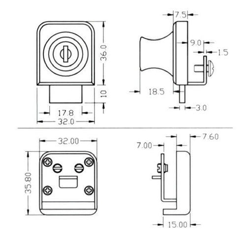 Cerradura 90 grados sin saques para vidrios de 5-6mm Cromada.