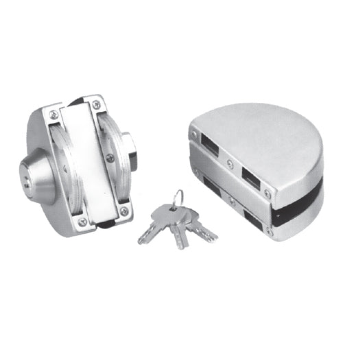 Cerradura De Gancho C/Recibidor P/Puertas Dobles. No Req Perforacion En Vidrio 8 A 12 Mm. Satinada