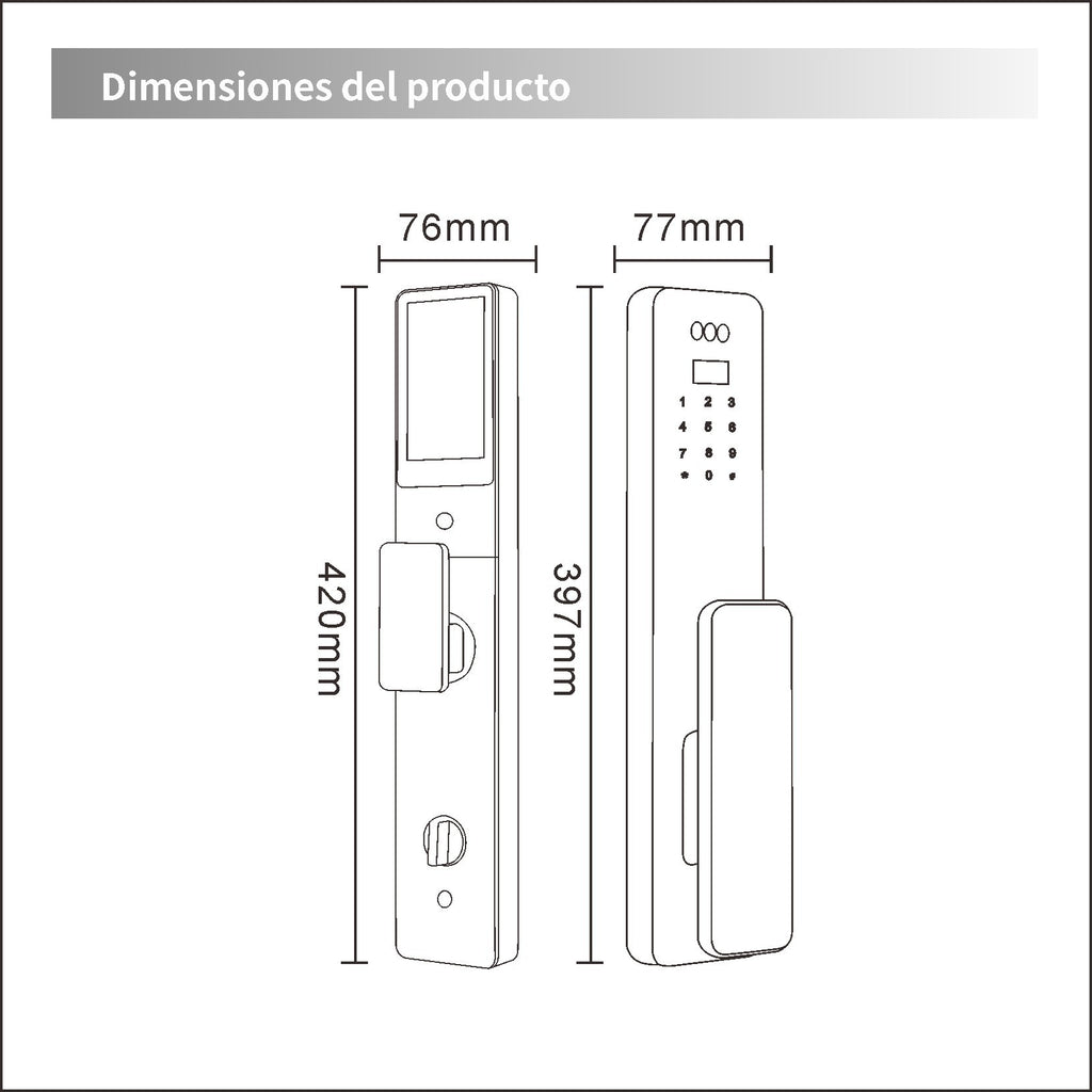 - Nuestra cerradura inteligente con cerrojo es compatible con puertas de 70 a 120 mm de grosor.