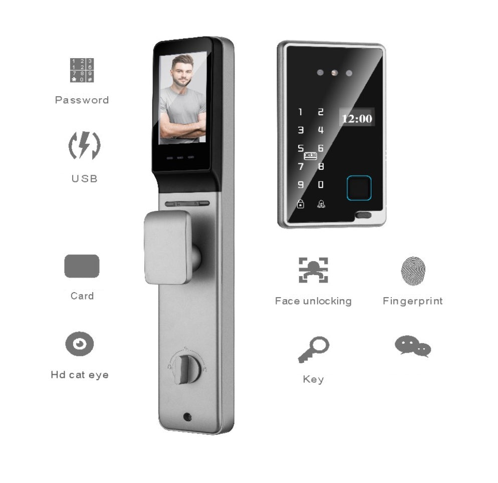 Cerradura de puerta inteligente con reconocimiento facial 3D Smart Lock de seguridad Video Huella contraseña app fácil de instalar