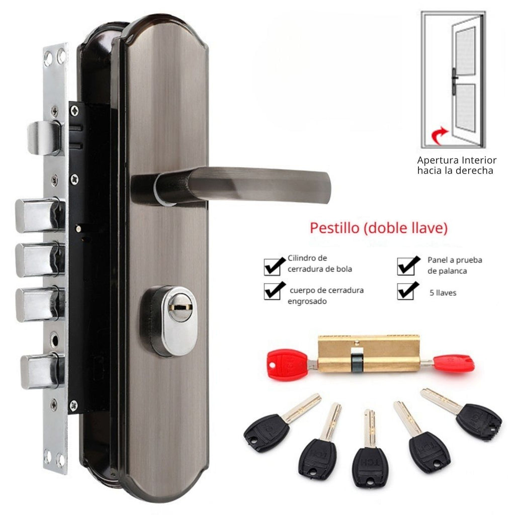 Cerradura De Seguridad Embutida Para Puertas De 45 a 55mm. Con Cilindro De Acero Inoxidable. Incluye 7 Llaves Doble Apertura.