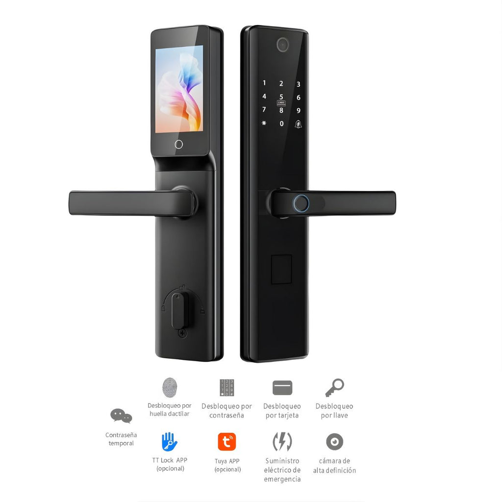 Cerradura Inteligente Digital Cerrojo Smart Lock 6 en 1 Llave Huella contraseña Bluetooth Camara app fácil de instalar