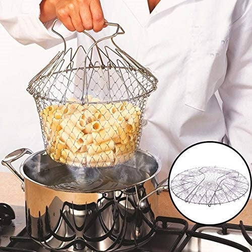 Ayudante de cocina esencial, Flexible. Se puede guardar en forma plana para un fácil almacenamiento, se expande instantáneamente cuando lo levantas a una cesta flexible que te permite cocinar, lavar, hervir o freír alimentos con facilidad.