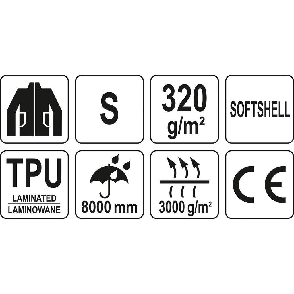 | Características | Tres bolsillos, incluido el bolsillo del pecho con un extractor de plástico de 25 mm con el logotipo de Yato unido al control deslizante mediante una cuerda de nylon, dos con cremallera de 25 mm. |