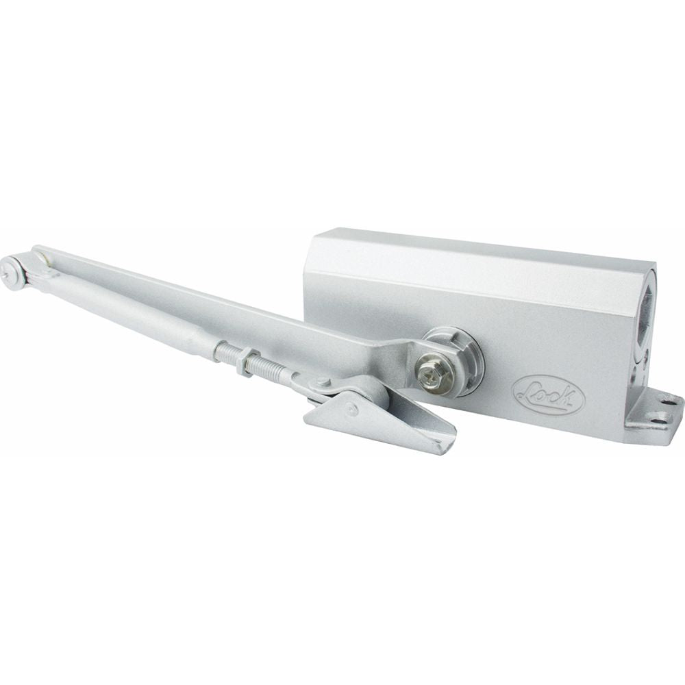 -Cierrapuertas hidráulico de uso continuo con función hold-open. Cuerpo de aluminio. Para puertas de hasta 45 kg.