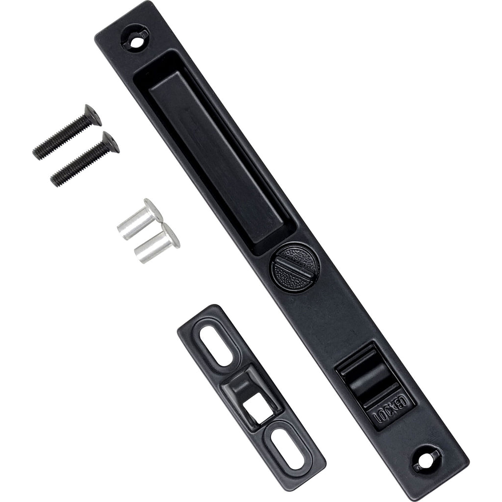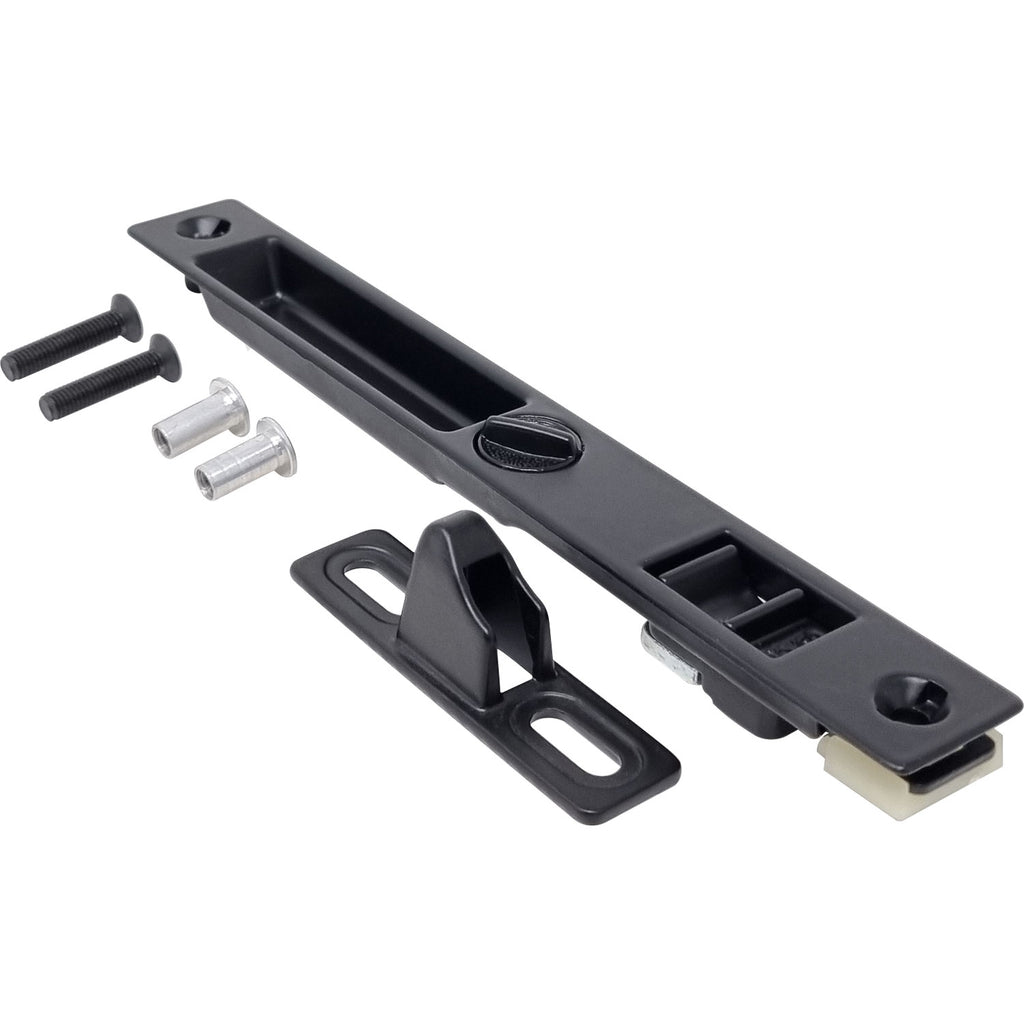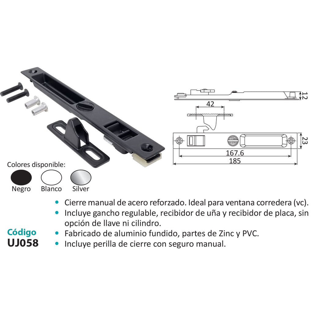 Cierre Embutido Manual para Ventana y Puerta Corredera. Aleacion de Zinc. Incluye Recibidor y Gancho. Color negro
