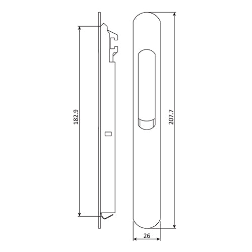 Cierre perimetral de tornillo oculto para sistema de ventanas serie perimetral Europa de 70mm. De alto de 207.7 mm, por un ancho de 26 mm y un largo de 16.6mm. En acabado blanco fabricados de aluminio extruido, Aleación de Zinc y PVC cierre perimetral automático con gancho y recibidor estilo europeo.