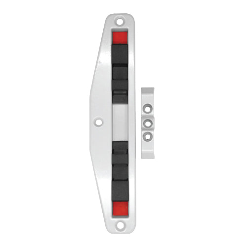 Cierre perimetral de doble gancho. Incluye recibidor y gancho. Tornillo visto. Acabado color Silver.
