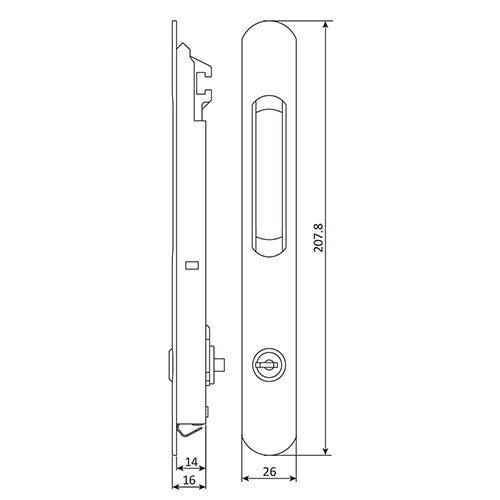 Cierre perimetral manual de tornillo oculto. Funciona con cilindro y llave. Incluye gancho y recibirdor. Color negro