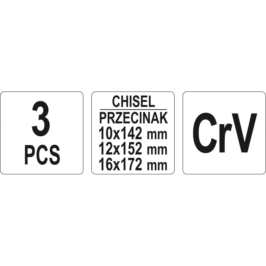 PIEZAS: 10 MM X 8 MM X 142 MM, 12 MM X 10 MM X 152 MM, 16 MM X 13 MM X 170 MM, ACERO CRV, ACABADO NEGRO; LOGOTIPO DE YATO IMPRESO CON LÁSER EN CUCHILLAS