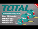 Cinta Metrica de Acero de 5 m. Ancho 25 mm. En Métros y Pulgadas. Doble botón. Material de Cubierta ABS. Alta calidad.