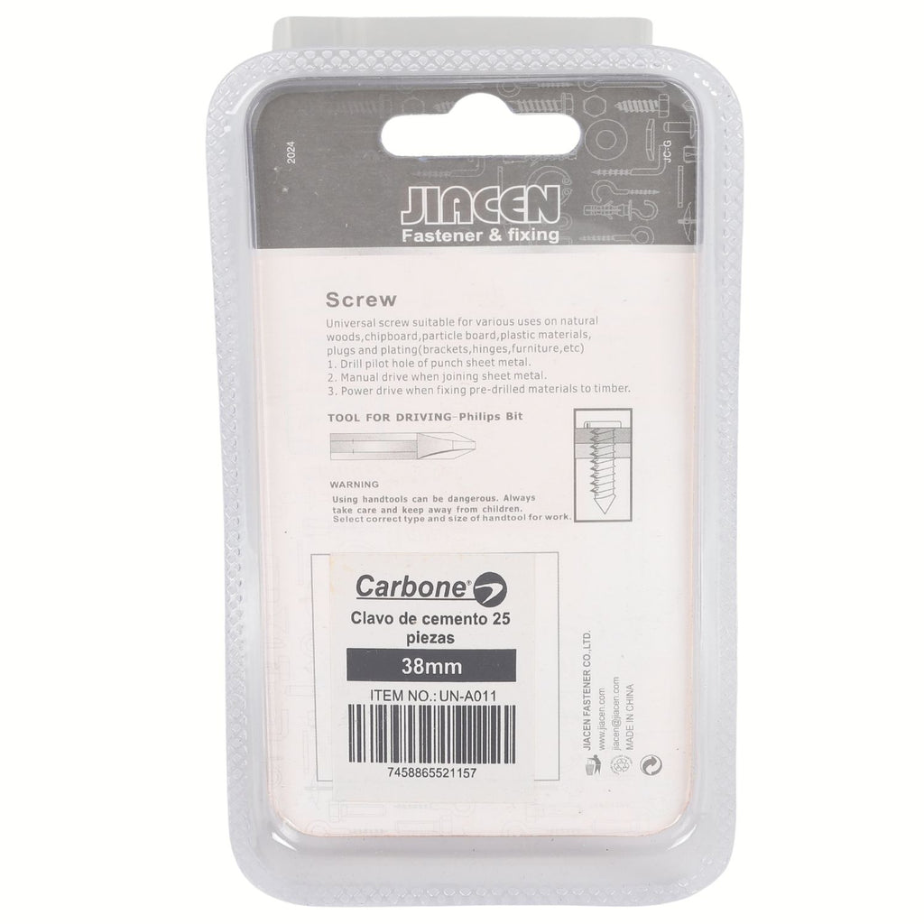 Clavos de cemento 38mm Punta Afilada Hierro resistente ideal para concreto Set 25 piezas.