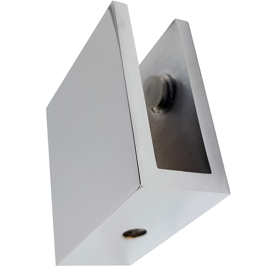 Clip especial sin perforación del vidrio (prisioneros). 45x45mm. Vidrios de 6 a 12mm. Acabado Brillante.