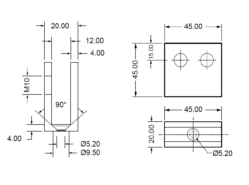 | Medida | Perforaciones laterales: 2 M10 |