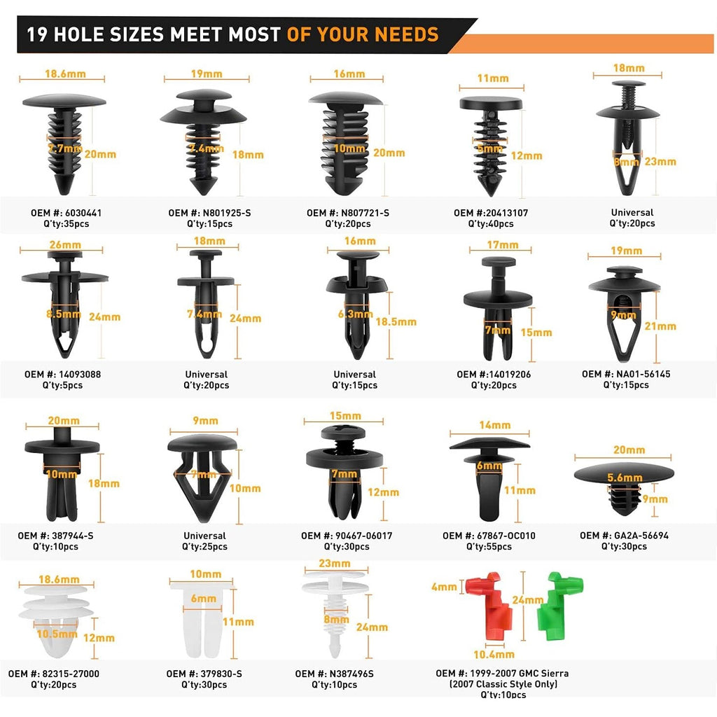 | *Nombre | Clips de retención para autos, set de 425 piezas, 19 tipos de clip. |