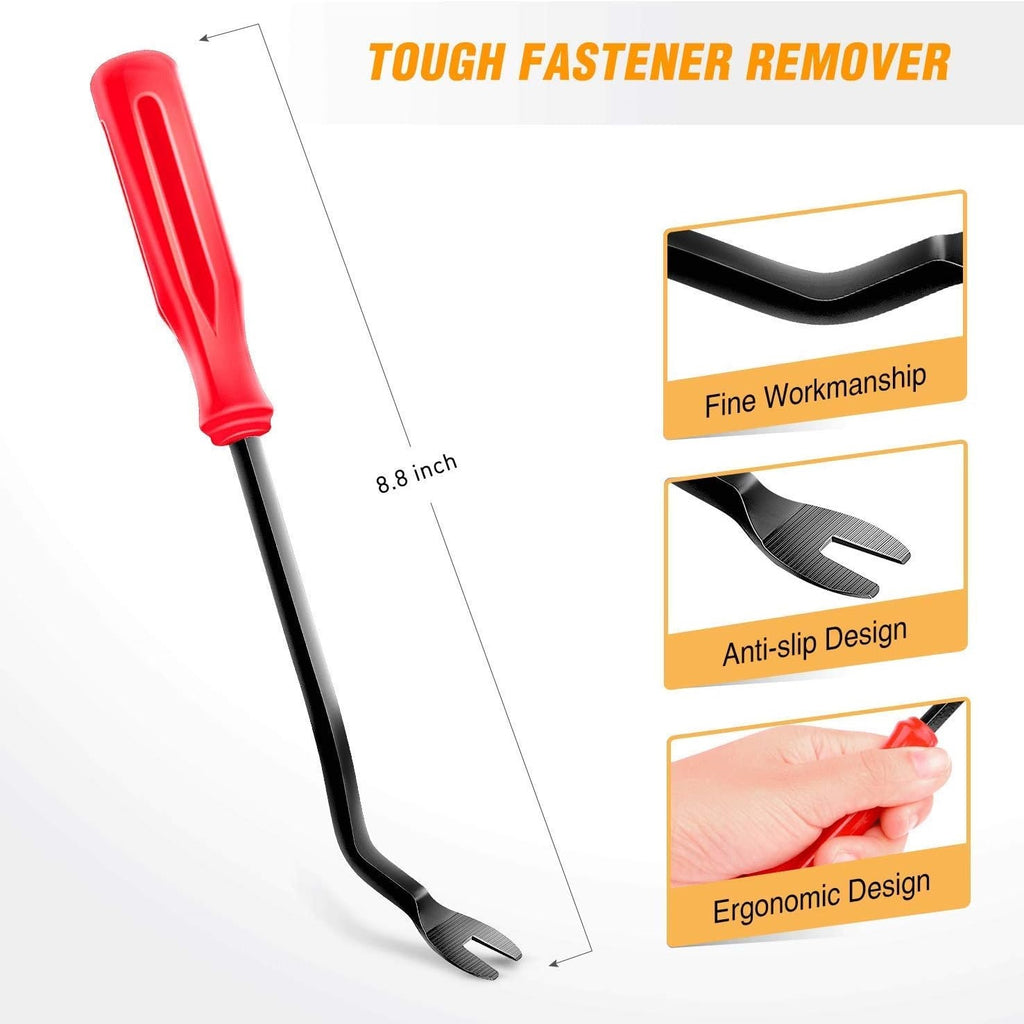 - Incluye herramienta que permite quitar rápida y fácilmente el panel de la puerta del coche y los clips de tapicería sin dañarlos. Fácil acceso a espacios reducidos.