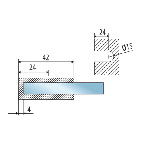 | Medida | 42 mm; Largo saque/barreno: 24 mm |